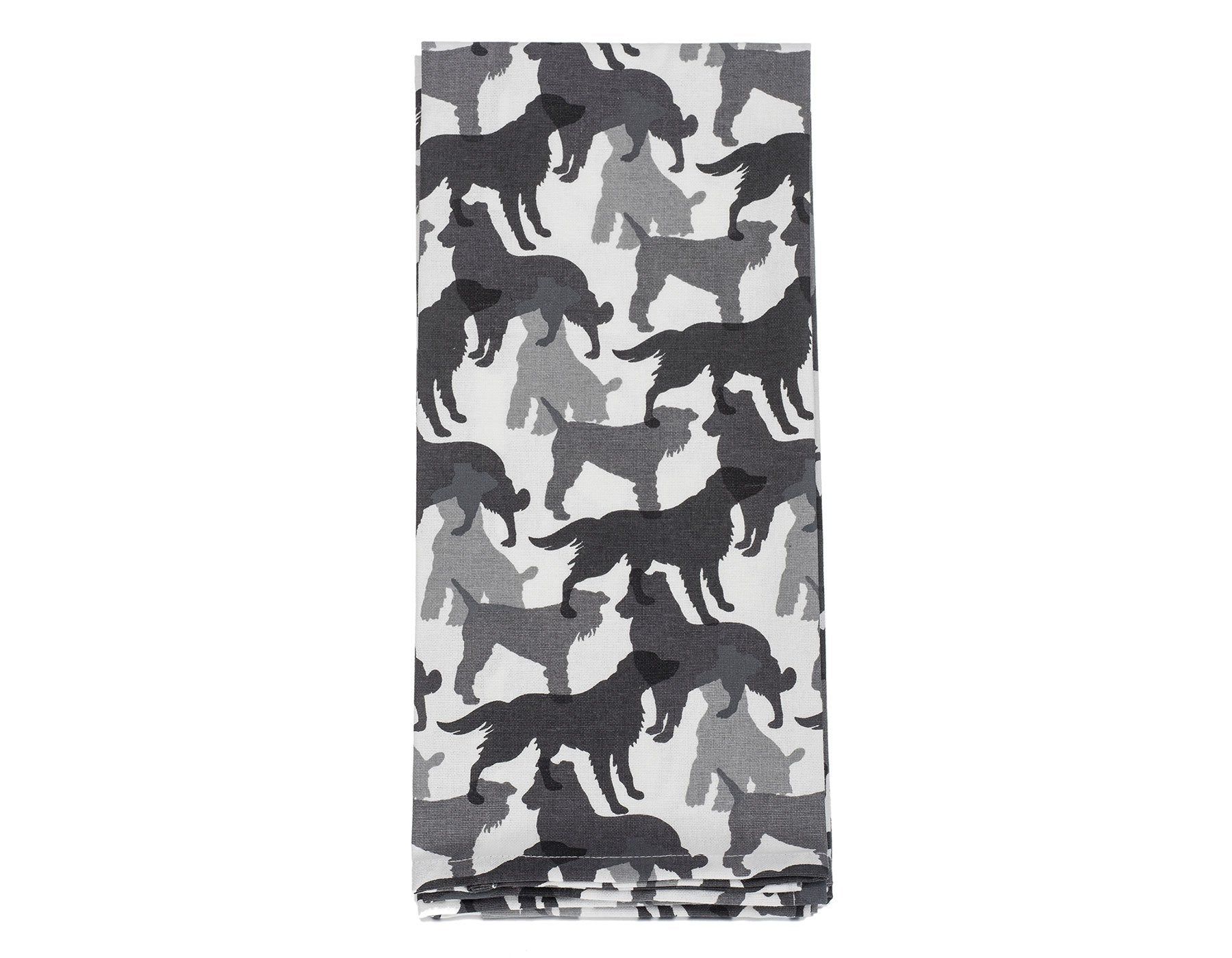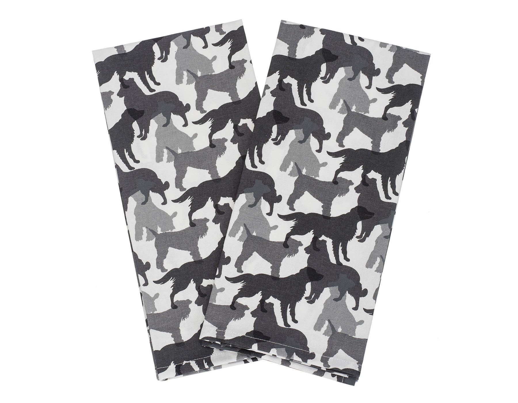 Pop Art illustrations inspired our Shades of Gray Dish Towel Set. Our towels, printed on 100% machine washable classic white cotton, features four variegated and overlapping dog silhouettes. The black, gray and white print is perfect for your kitchen. Created exclusively for House + Hound our towels offers great absorbency and durability for everyday prep and cleanup tasks.