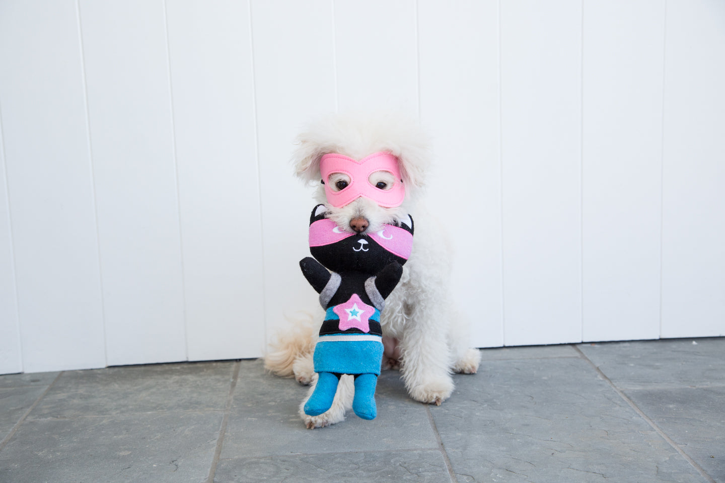 My dogs love kicky the cat. Holds up pretty well