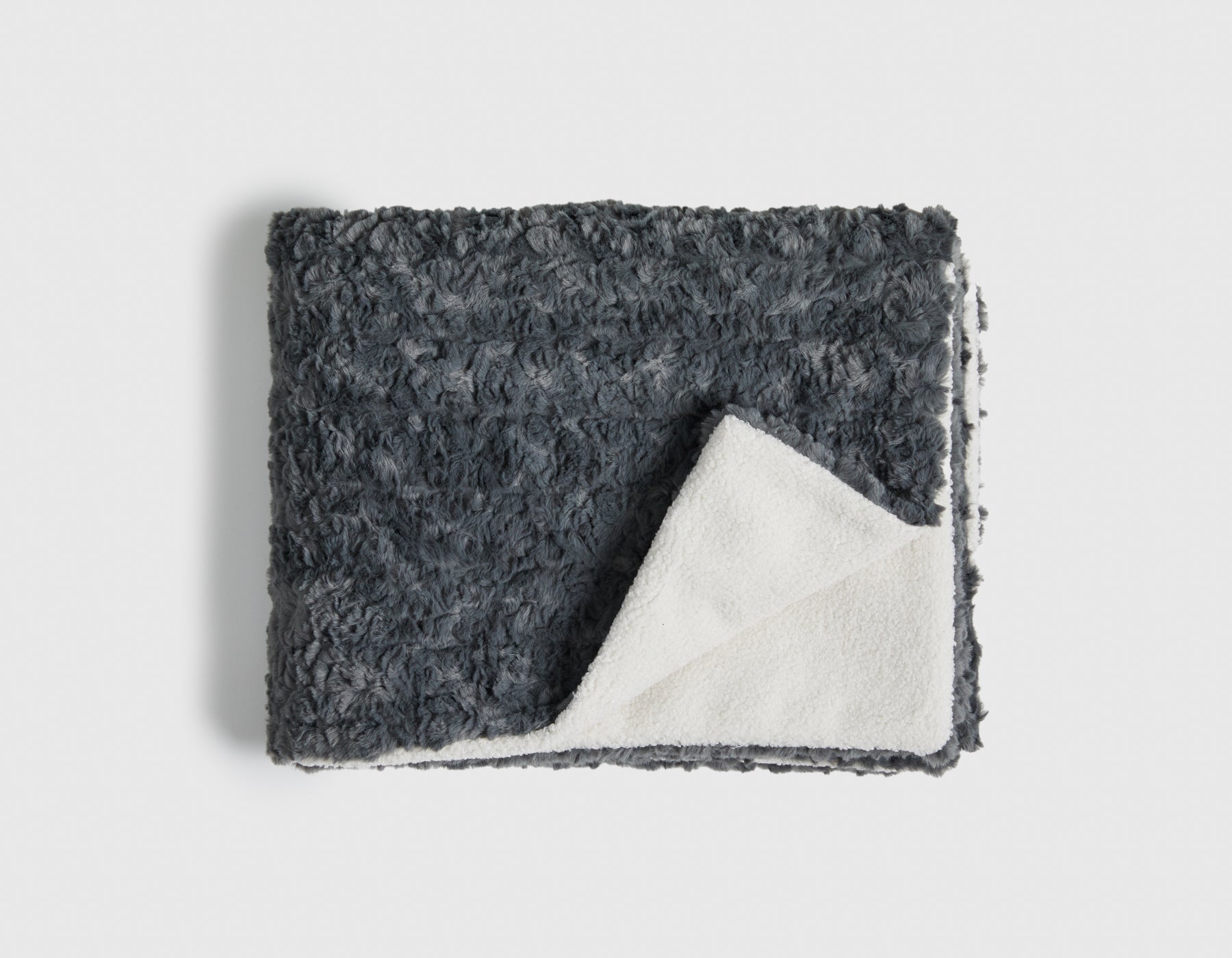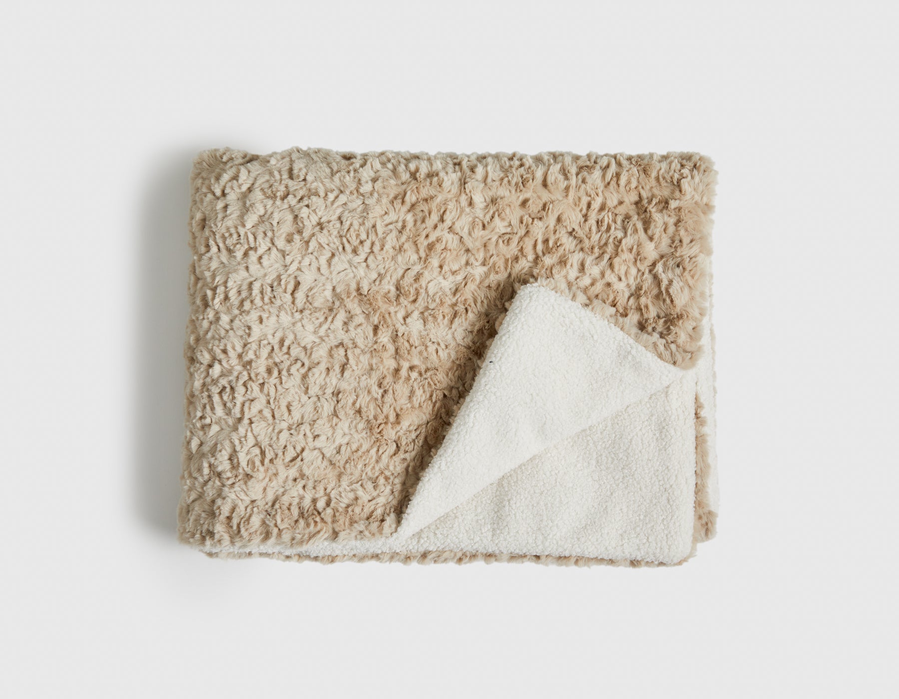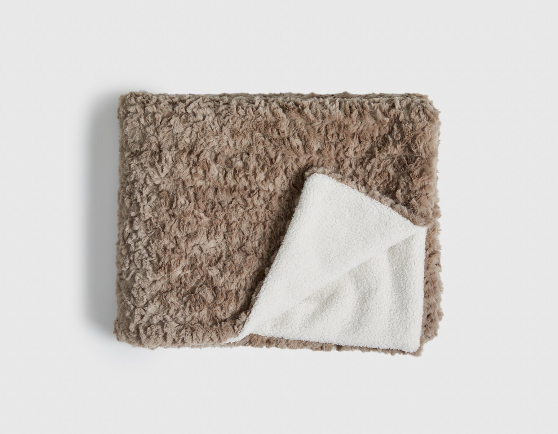 Available in Butterscotch, Mocha, and Winter, each blanket features a soft white plush lining that adds warmth without weight. A modern essential for every snuggly pup.