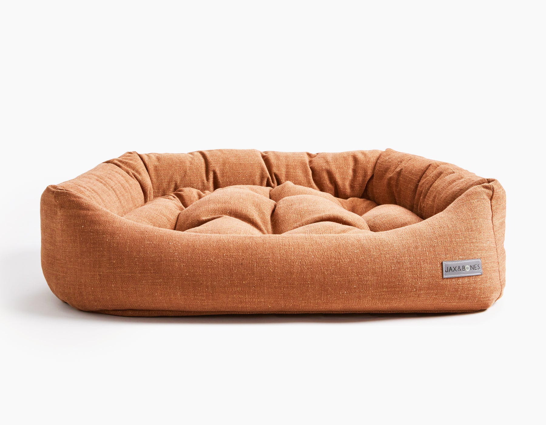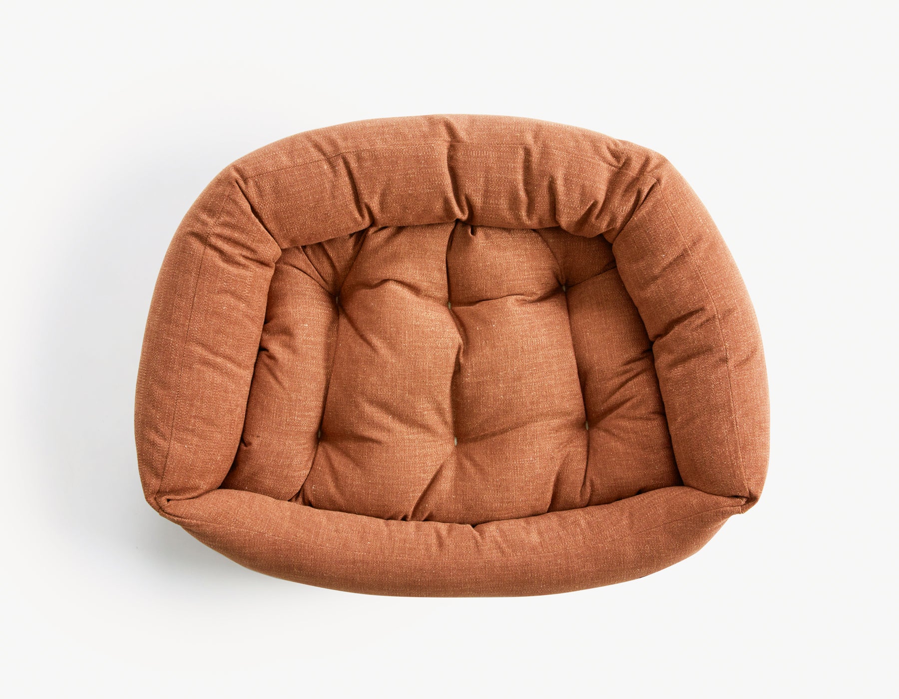 The Napper Bed is incredibly comfortable and provides hours of deep sleep. Outer bolsters unzip for easy maintenance and the center pad is removable for easy washing. This bed is overstuffed and is excellent for senior dogs who need a little extra joint support. This bed features a heavy-weight textured linen that is soft to the touch. Designed with a high pile ripple look, this collection provides superior comfort. Easy to care for, this fabric choice is what dogs would write home about if they only knew how. Perfect for heavy traffic use.